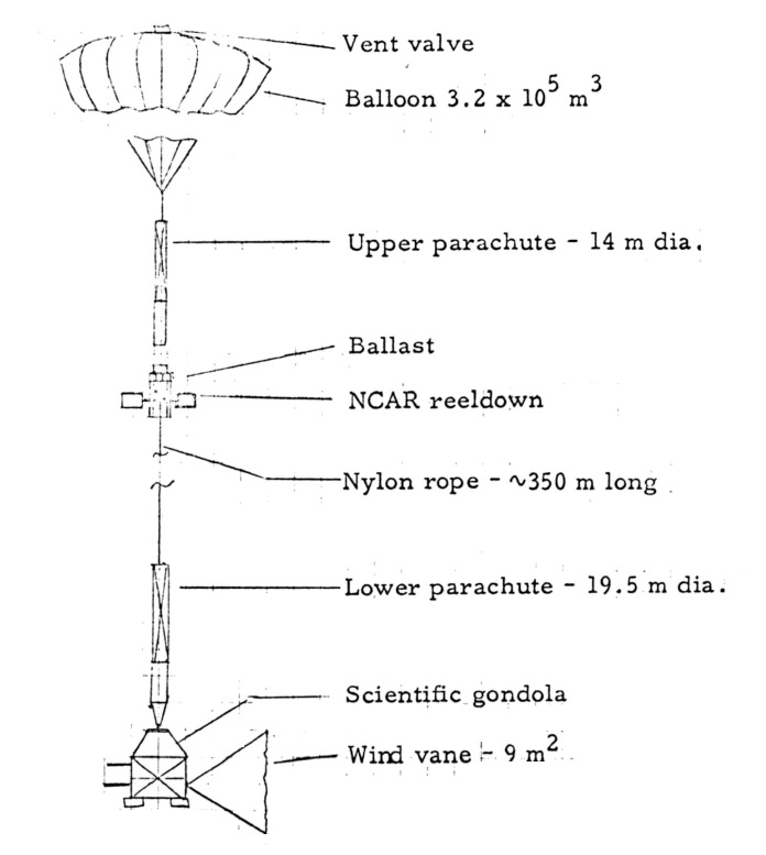 The objective of the flight was to extend the measurements of atmospheric trace gases and aerosols, previously carried out with high-altitude U-2 aircraft, to even higher altitudes using a balloon-borne platform. The aim was to collect uncontaminated air samples for identifying fluorocarbons, nitrous oxide, and other trace gases, as well as to collect aerosols for physical and compositional analysis. A significant secondary objective was to test and evaluate the performance of a wind-pointing gondola system that could orient itself into the differential wind to ensure clean sampling conditions. The experiment was a collaborative effort involving the Ames Research Center of NASA, and the National Center for Atmospheric Research (NCAR). Key technical support, such as air ejector systems and components, was also provided by the U.S. Air Force.