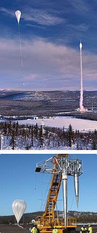 The center has conducted stratospheric balloon operations since 1974 and has launched more than six hundred balloons over five decades. Balloon flight durations at Esrange range from several hours to up to two weeks, enabled by the polar location and the availability of a vast, unpopulated impact and recovery area stretching eastward into Finland and Norway. Payload masses can reach several tons, and missions support atmospheric composition studies, astronomical observations, cosmic radiation measurement, and technology demonstrations including re-entry capsule tests and unmanned aerial vehicle trials. Long-duration missions were performed from Esrange by launching balloons during summer on circumpolar flights, as long as Russian government authorization permitted overflight of its territory. In recent years, a new campaign scheme has been introduced featuring transatlantic balloon flights from Sweden to Northern Canada, which is exploited mainly by the NASA balloon program and the French space agency CNES.