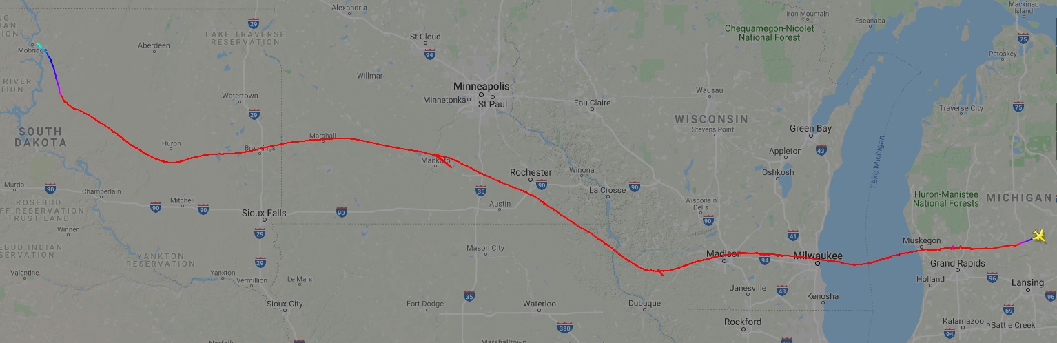The flight developed apparently without trouble during the more than 25 hours the balloon was aloft. The tracking showed that by 12:45 utc it had landed somewhere in Saginaw county, Michigan. Below these lines you can see the flight path followed by the balloon. The landing spot was not unusual as in the last month Raven Aerostar made several flights in the area and almost two landed also in Michigan.